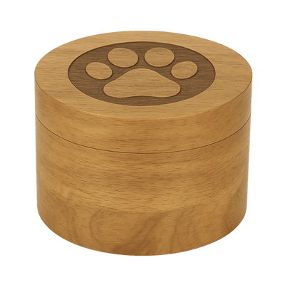 Personalised Wooden Dog Urn with Infinity Paw Heart – Engraved Pet Memorial Urn with Name & Dates