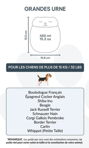 Une urne funéraire symbolique et apaisante, pour honorer la mémoire de votre chien tout en gardant son esprit tout près de vous.