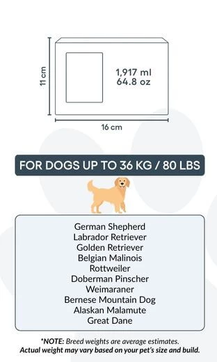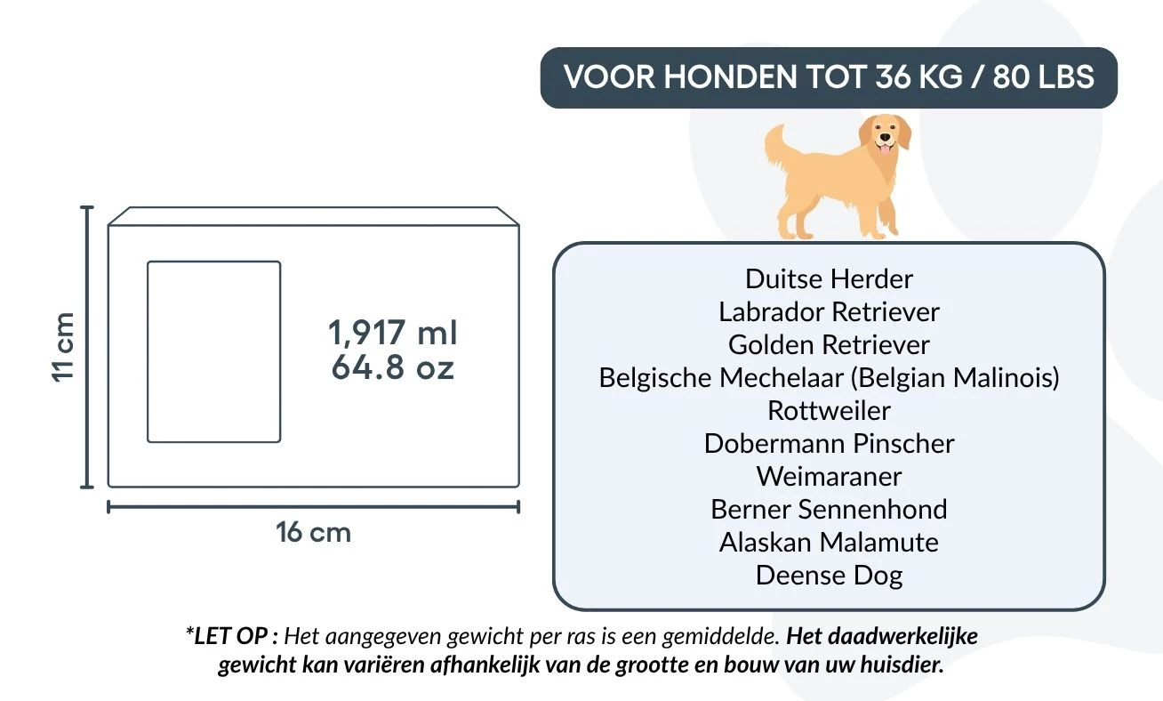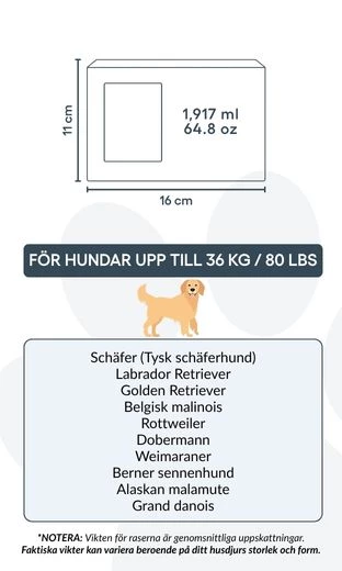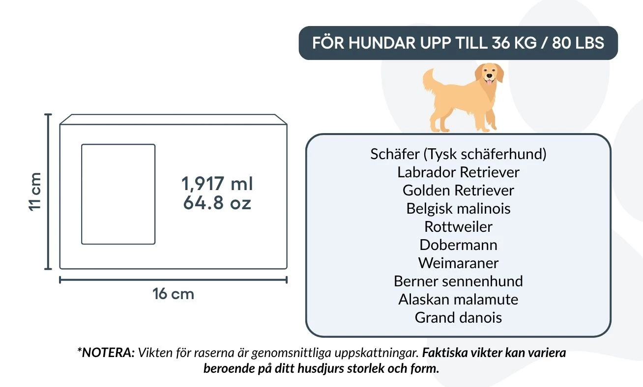 Avec sa grande capacité (~2 869 ml), cette urne funéraire convient aux chiens de taille moyenne à grande, tels que le Labrador, le Berger Allemand ou le Golden Retriever.