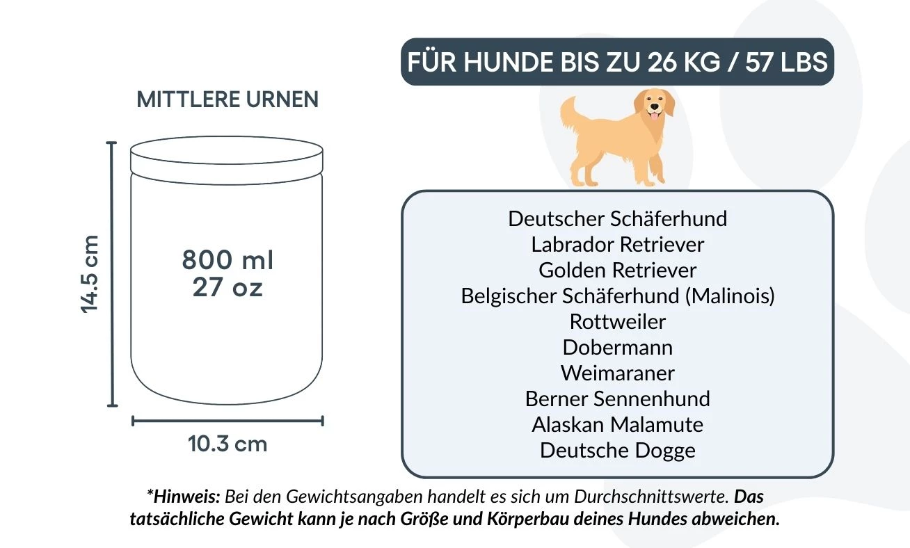 Adaptée aux petits et moyens chiens, cette urne n’est pas qu’un simple contenant : c’est un souvenir précieux, symbole du lien unique entre vous et votre compagnon. Placée sur une étagère, une table ou dans un coin commémoratif, elle vous permet de garder sa mémoire vivante jour après jour.