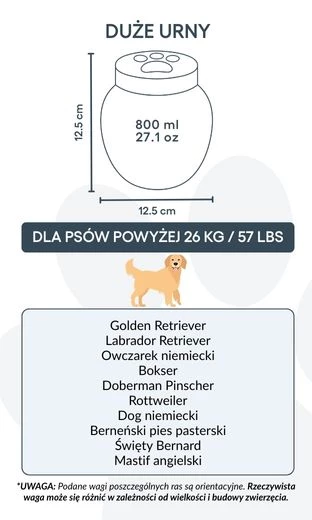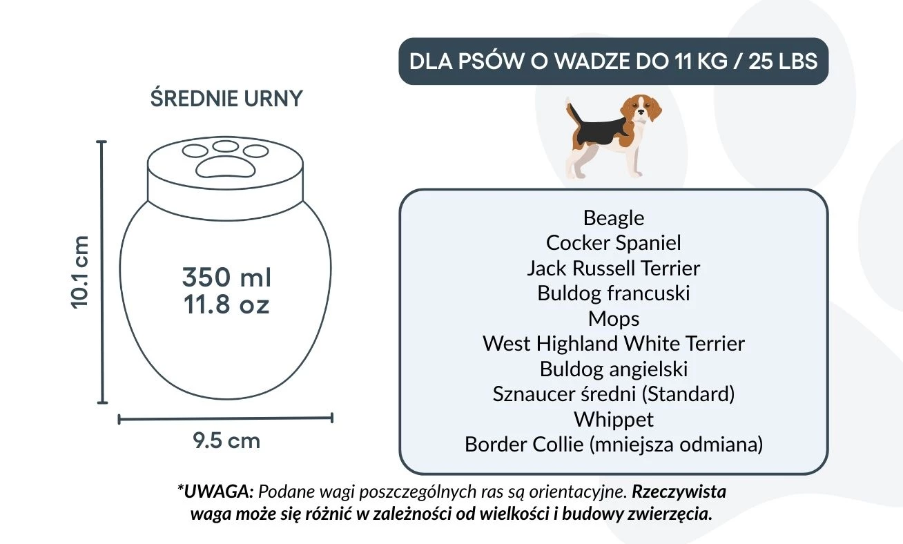 Vous pouvez personnaliser cette urne avec le nom, les dates et un symbole gravé représentant l’amour éternel. Sa finition lisse et son design intemporel permettent de l’exposer fièrement dans votre intérieur ou de la garder dans un lieu symbolique. Parfaite pour les cendres de crémation, cette urne devient un hommage silencieux et élégant au lien unique que vous partagez avec votre animal.