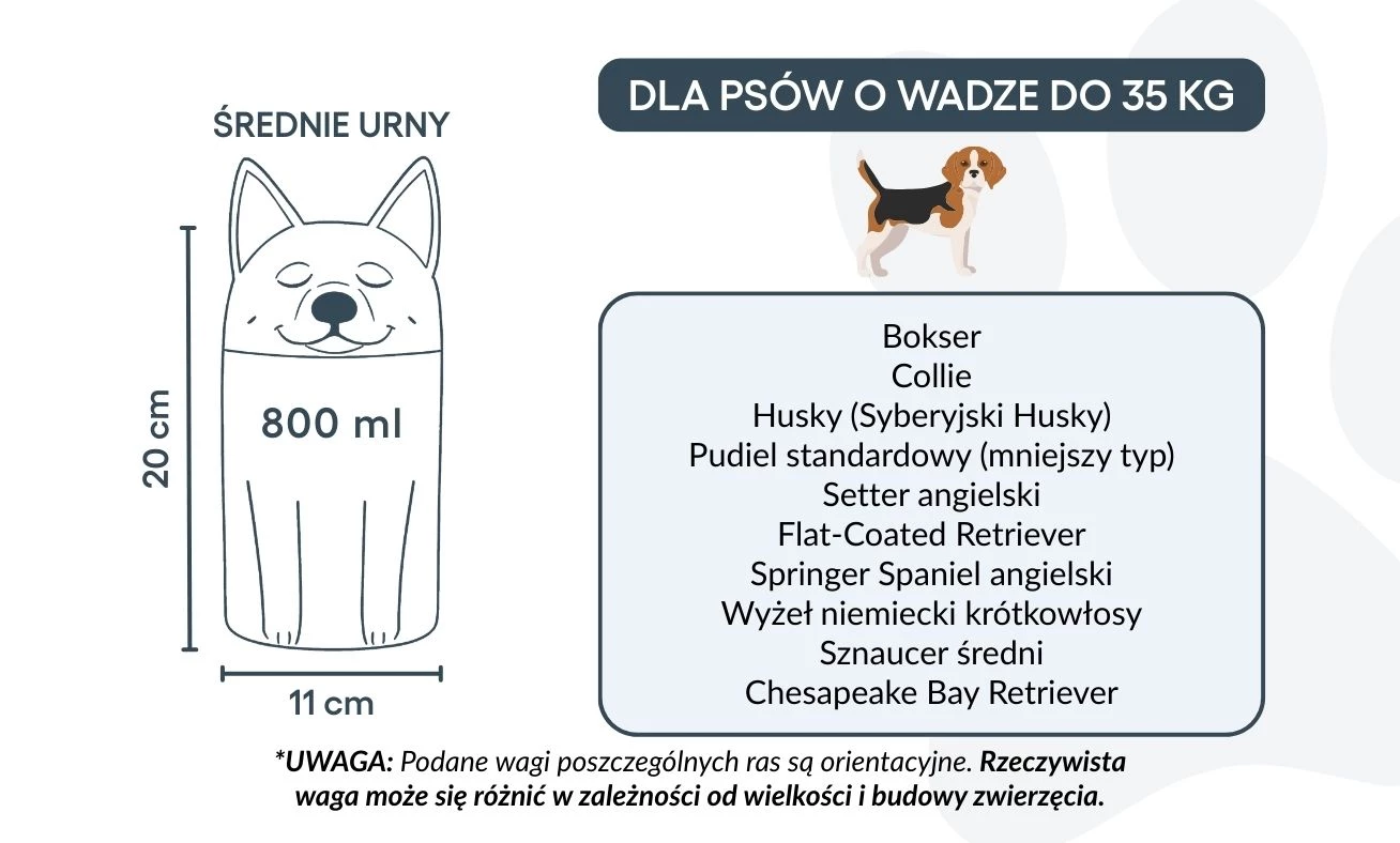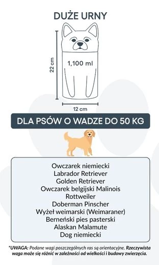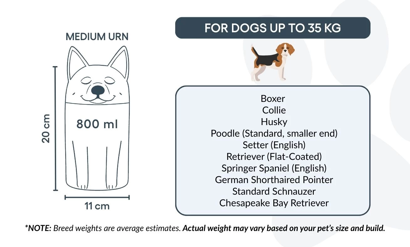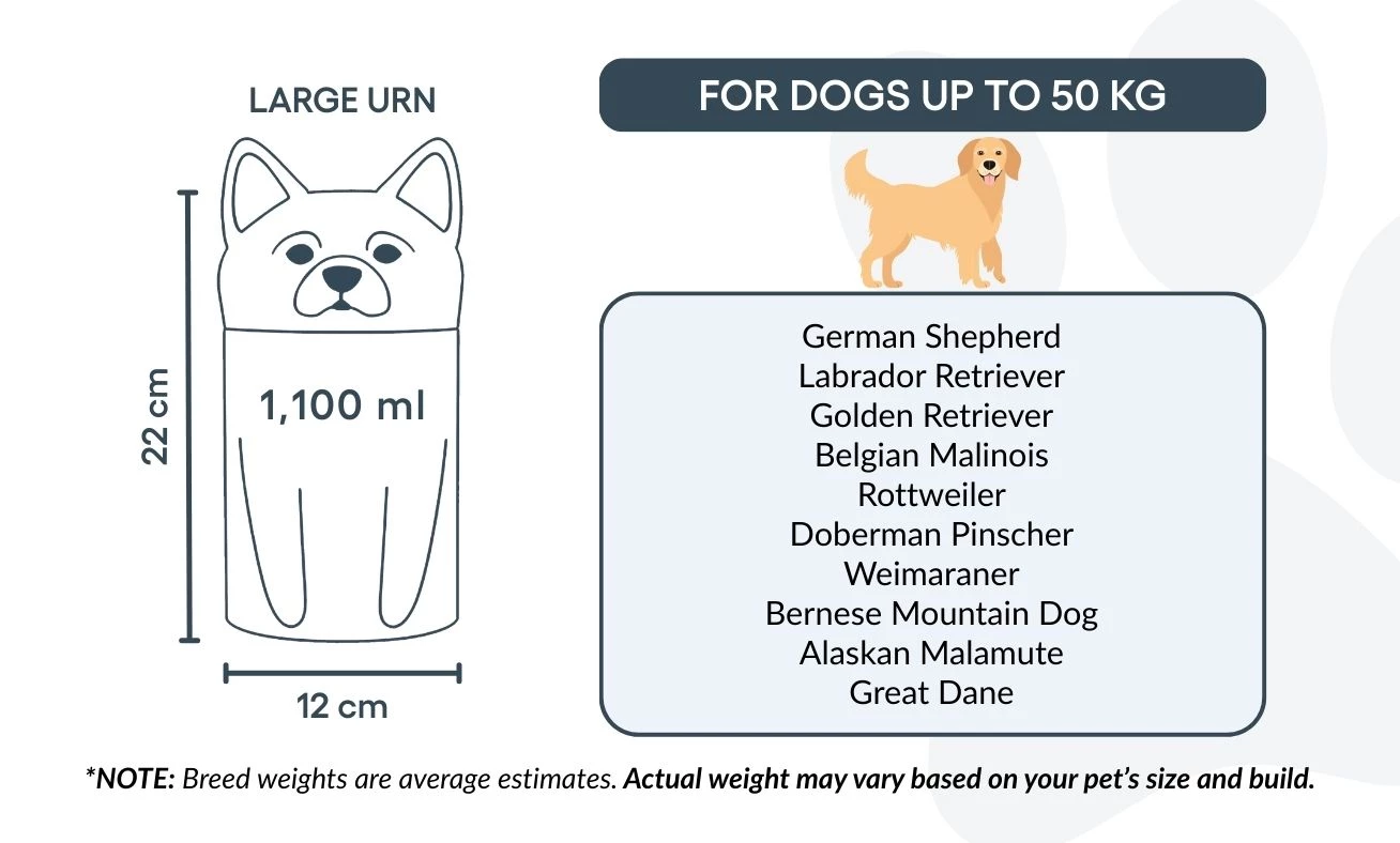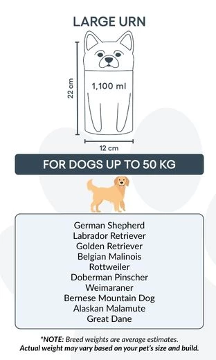 Disponible en trois tailles pour chiens jusqu’à 50 kg, cette urne funéraire personnalisée peut également être gravée avec un texte ou un message commémoratif. Son design stable et sécurisé garantit la protection des cendres, tandis que sa présentation élégante en fait un bel hommage intérieur pour célébrer la mémoire de votre animal.